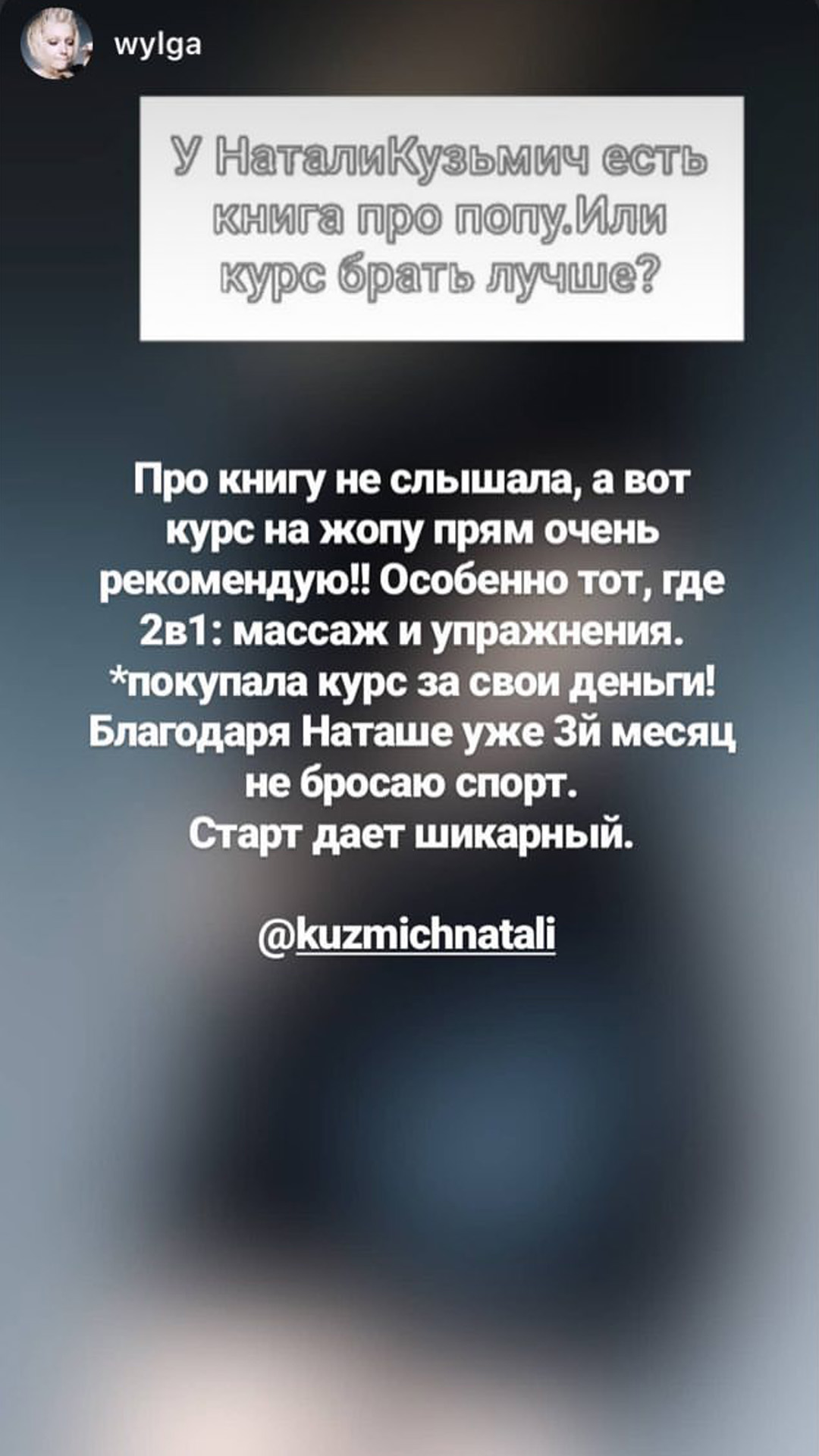 Привет, меня зовут Наталья Кузьмич. Я фитнес тренер.